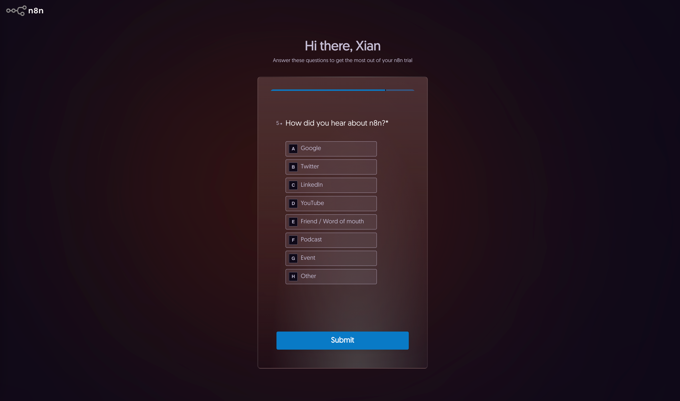 Then, just recently, I stumbled upon a new automation tool called n8n - and it felt like finding a gold mine. When I registered for an account, I was asked to go through a simple onboarding flow. Suddenly, everything clicked.